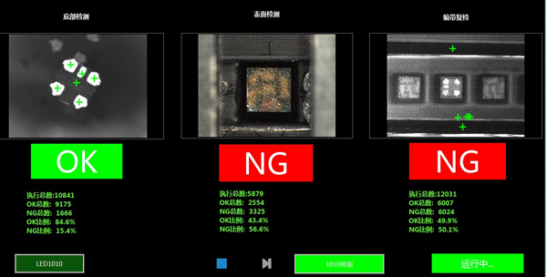 LED視覺檢測系統(tǒng)由我司自主研發(fā),適用于貼片LED底部缺陷,正面反料、側(cè)料、倒料、缺料、邊緣毛刺檢測及包裝復(fù)檢,檢測速度高達(dá)45K/小時(shí)。過檢率小于萬分之三,無漏檢。檢測規(guī)格包含LED-1010、LED-21218092407187,029-68873999 ">