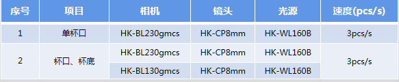 2.主要功能:紙杯外側壁缺陷檢測、污漬檢測,檢測結果IO信號輸出。 |